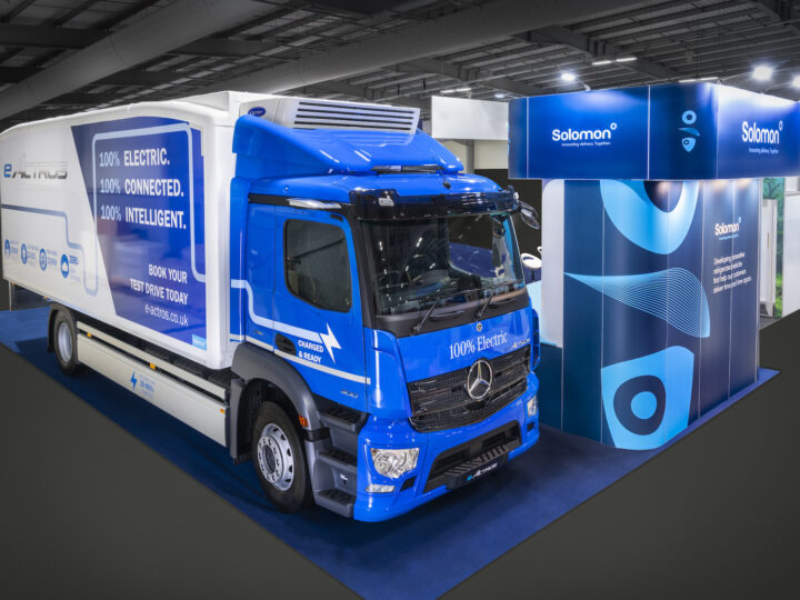 Farnborough, UK: Mercedes-Benz Trucks launched a fridge-bodied eActros electric truck at the ITT Hub this week. The Solomon Commercials bodied truck has a Carrier Transicold Syberia overcab fridge and Carrier’s Datacold temperature monitoring. The 19-tonne 4×2 E-Actros 300 has three battery packs with a total capacity of 336kWh to give a range of up to 200 miles …