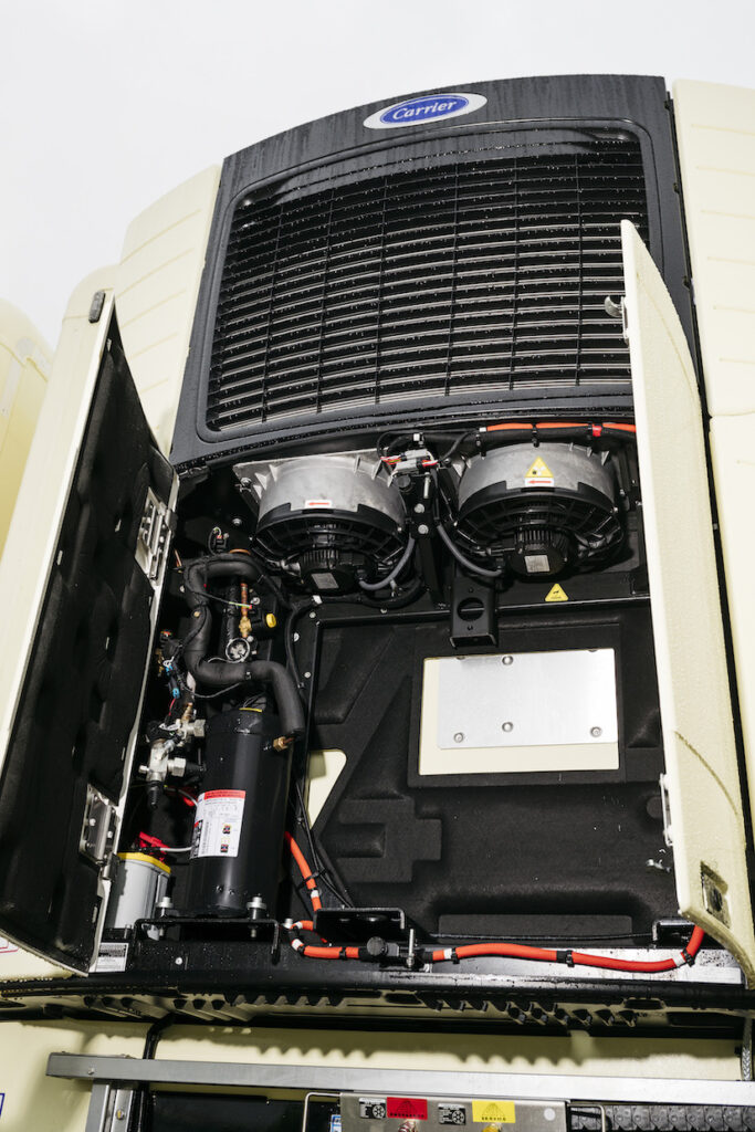 The E-cCool unit combines Carrier’s E-Drive all-electric technology with an energy recovery and storage system. This converts kinetic energy generated by the trailer axle and brakes into electric power, which is stored in a battery pack that powers the refrigeration unit – a loop that creates the industry’s first fully autonomous system, producing no direct carbon dioxide (CO2) or particulate emissions. The Vector eCool is also Piek-compliant.